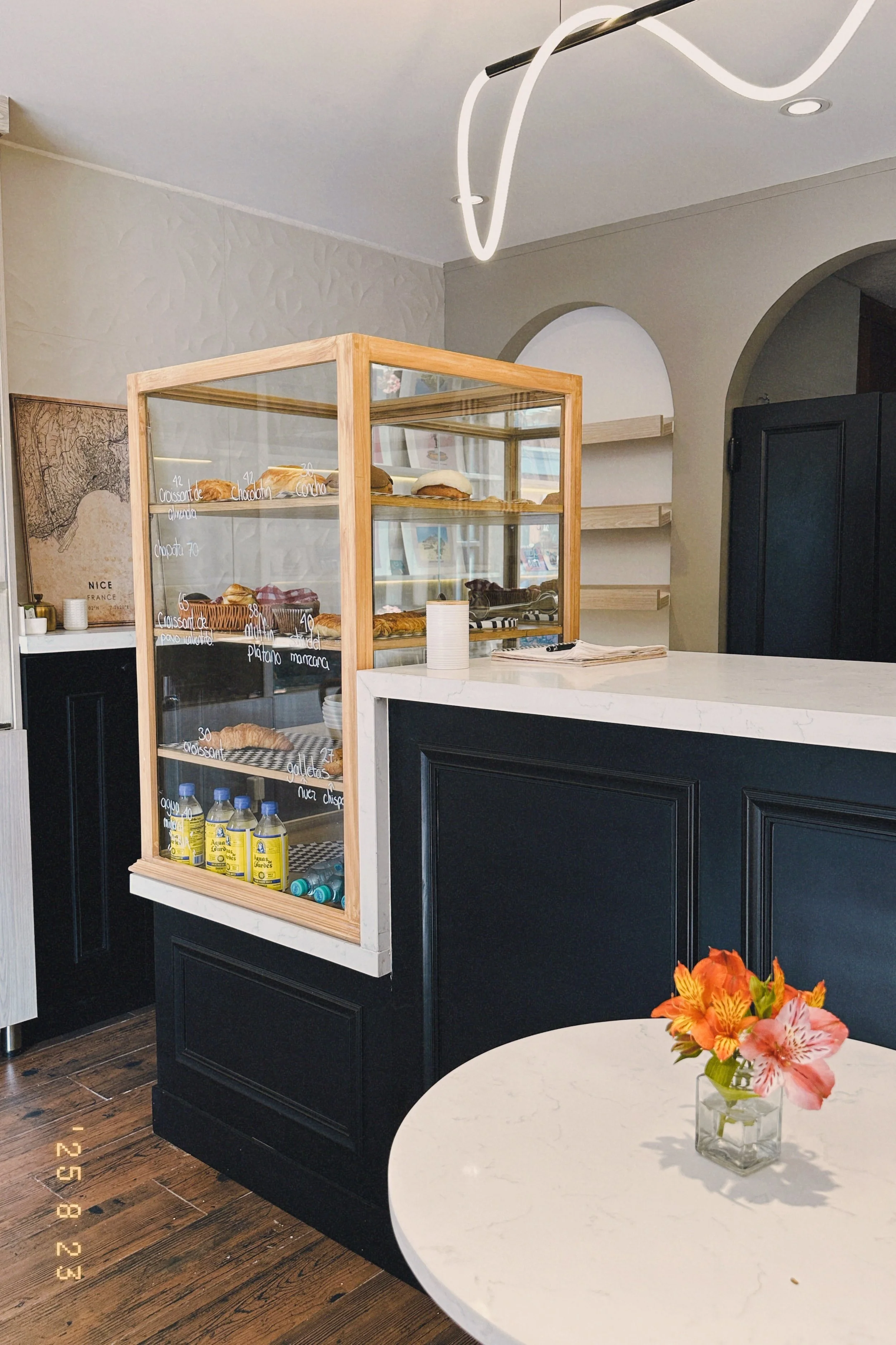 From the outside, I noticed a scribble of LED light floating above the bar. To be honest, it was that small accent in the space that made me stop and look closer. I hadn’t seen this place before… it was a new café on Allende Street, a street I’ve walked hundreds of times, almost across from the museum’s doors and right next to my good friend Pepe’s hotel: La Casa del Atrio.